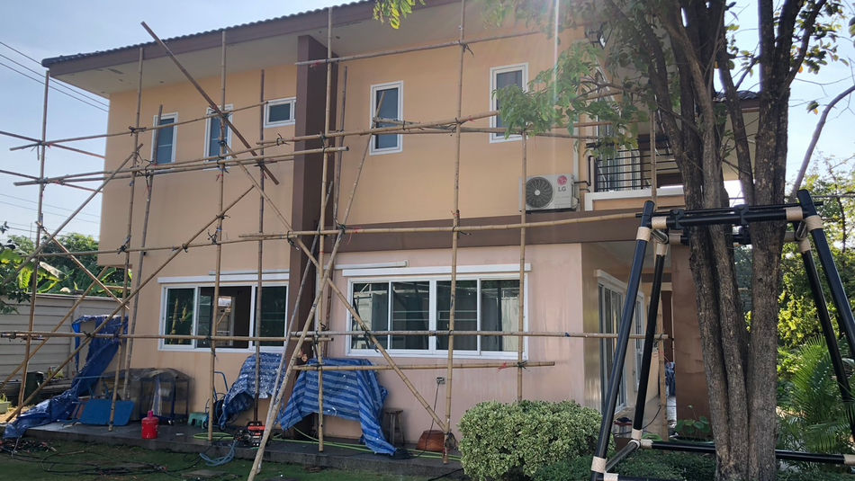 บ้านพุทธมณฑล สาย 4- บ้านพักอาศัย 2 ชั้น- งานทาสีภายนอก- งานทาสีโรงจอดรถ